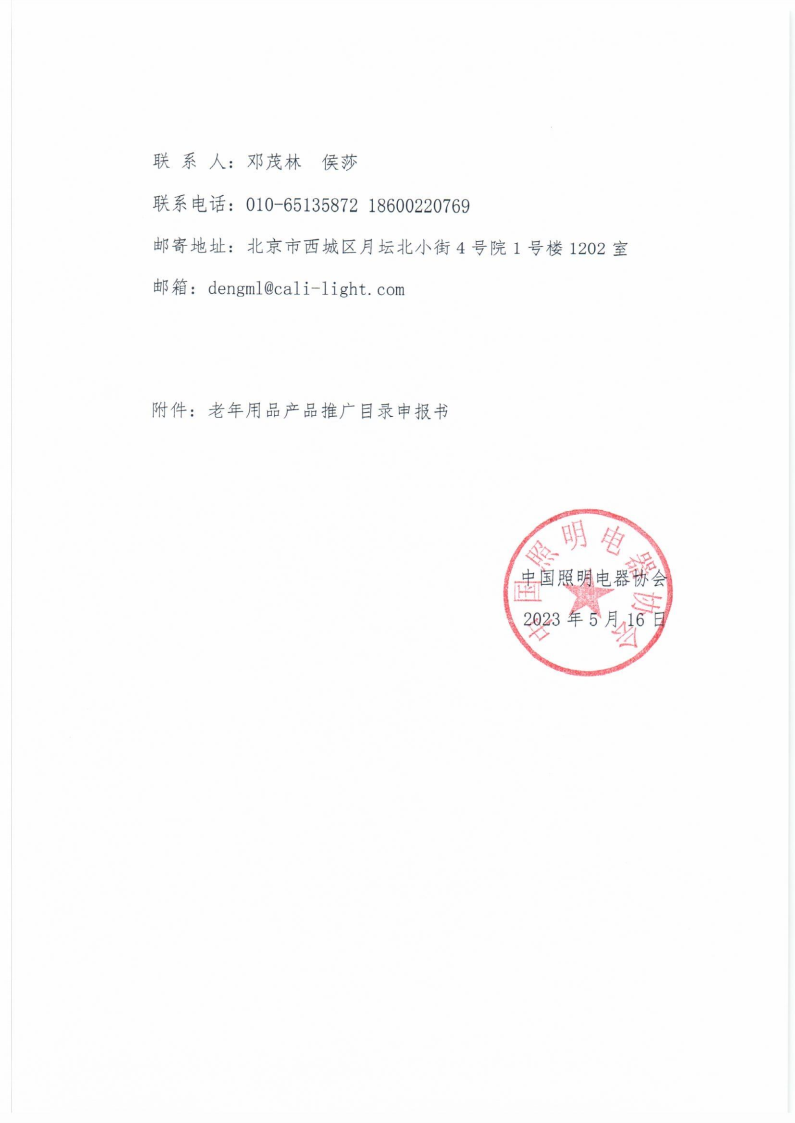關于面向照明行業組織申報 2023年老年用品推廣目錄的通知